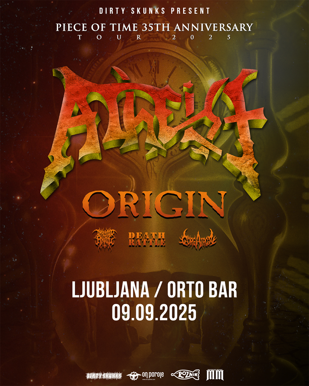 09.09.2025 - Atheist (USA), Origin (USA), Death Rattle (USA), Gorgatron (USA), Infested Angel (UK) @ Orto Bar, Ljubljana