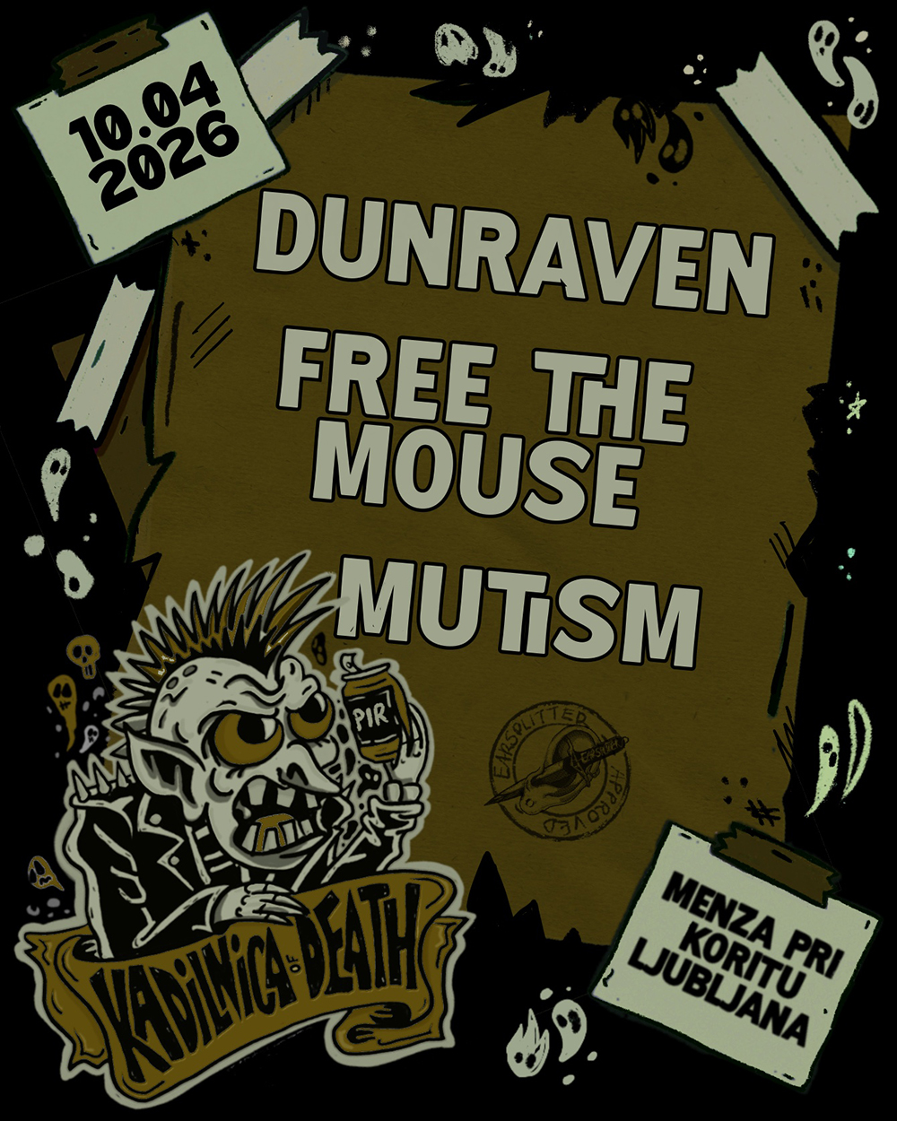 10.04.2026 - Kadilnica of Death: Dunraven (Slo), Free the Mouse (Slo), Mutism (Slo) @ Menza pri koritu, Metelkova, Ljubljana